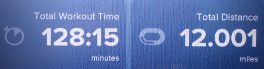 I upped my long run (on the treadmill, again) to 12 miles. Again, not fast, but, slow and steady covers (if not wins) the race.